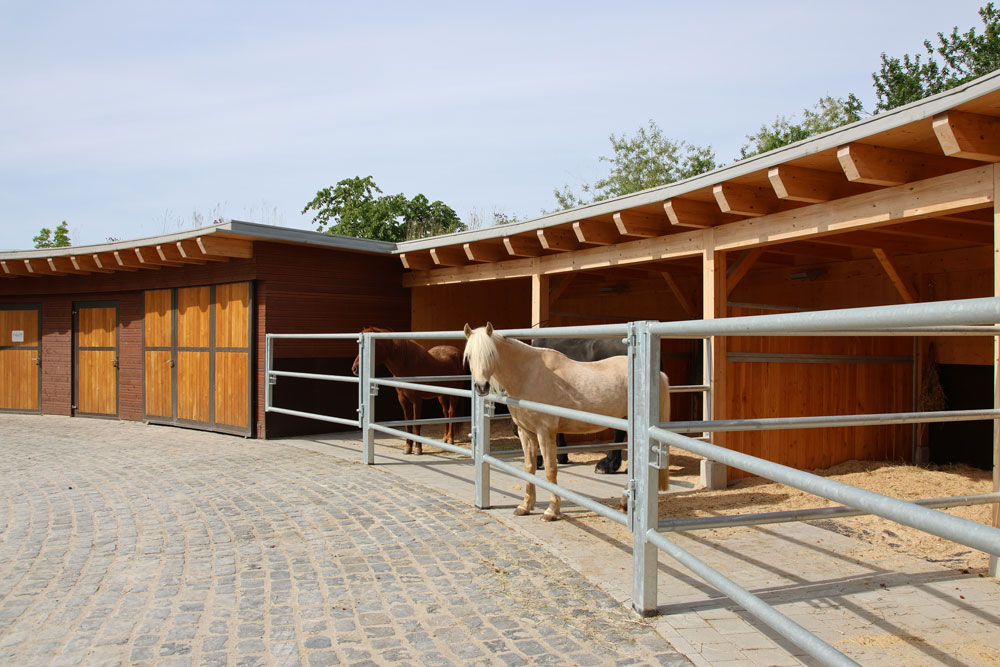 Für Gastpferde, die an Reitkursen, Sattelcoachings und Workshops teilnehmen, gibt es auf dem Aarhof einen gesonderten Gastpferdestall mit 5 halb-überdachten Paddockboxen.