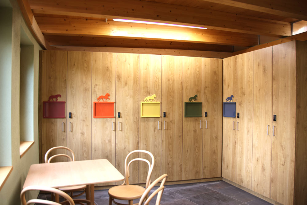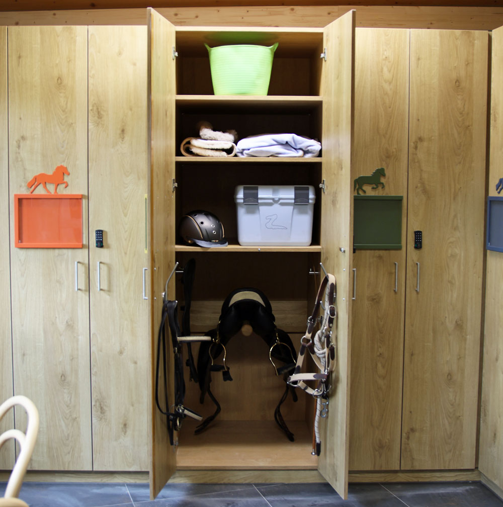 Im angrenzenden Reiterstübchen steht jedem Teilnehmer ein großer eigener Spind zur Verfügung, den du mit einem selbst gewählten Code schließen kannst, so dass du dein Equipment sicher dort unterbringen kannst.