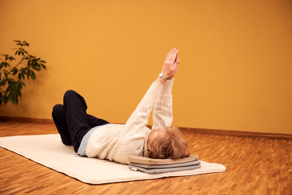 Für den ATM-Gruppenunterricht solltest du eine nicht zu weiche Unterlage (z.B. Yoga- oder Gymnastikmatte) und eine Decke mitbringen, die du bei Bedarf falten oder rollen kannst, um bequemer zu liegen.